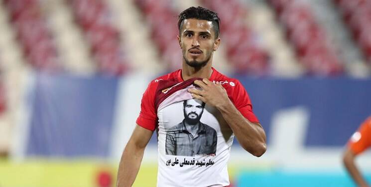 و نمایش تصویر شهید علی پور بر پیراهن خود که به این شهید توسل کرده است